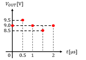 最後に、入力信号VINが-0.5[V]、t=1.5[μs]の時も同様に考えます。