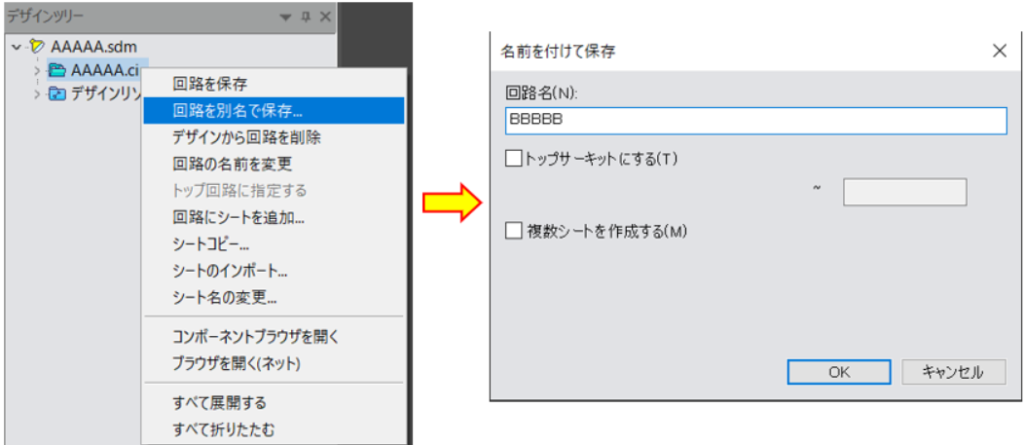 ただ、こんなことしなくても、「AAAAA.cir」フォルダをそのままコピーして「BBBBB.cir」とすることでも回路図シートの複製は可能です。