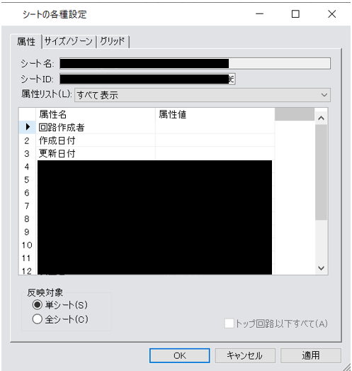 図枠項目の編集で気を付けるべき点は、反映対象のチェックがどちらに入っているかです。