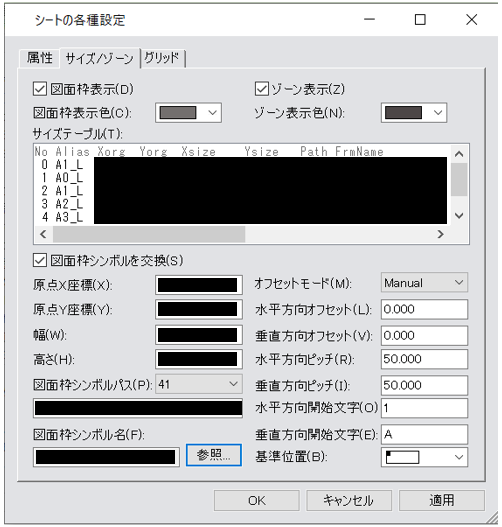 その為、A1サイズの図枠が欲しいのならA1_L、A2サイズの図枠が欲しいのならA2_Lをサイズテーブルの中から選択すれば良いわけです。