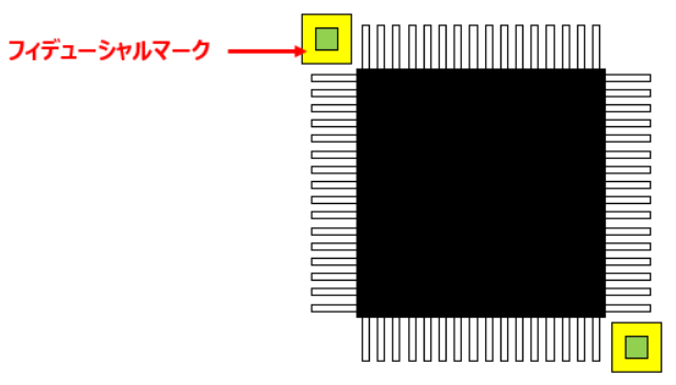 このタイプの部品の場合、部品の対角上にも2箇所のフィデューシャルマークを設けている場合があります。