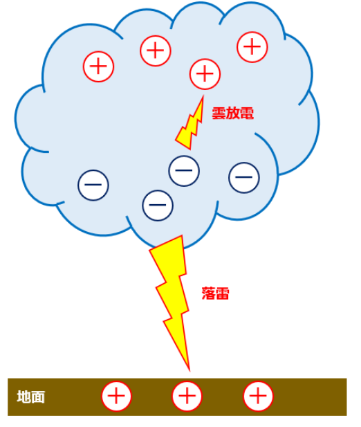 この現象が雲内部の所々で発生した結果、雲の上の方が正の電荷を帯びて、雲の下の方が負の電荷を帯びるようになります