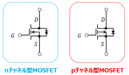 ちなみに、MOSFETの回路記号(図記号)にてドレイン-ソース間にダイオードがくっついていることがありますが、アレは寄生ダイオードを表示しているだけだったりします。