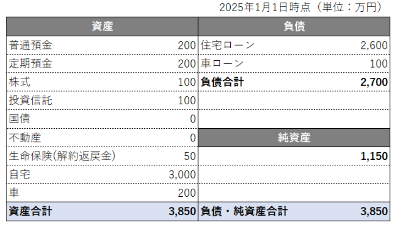 個人バランスシートに関しては、まず実際の記入例を見てもらった方が良いかと思います。