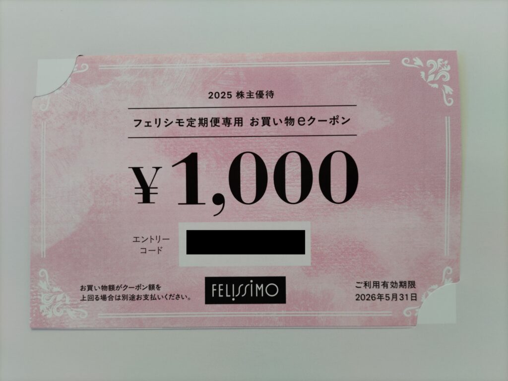 フェリシモの優待は、自社製品定期便専用お買い物クーポンです。