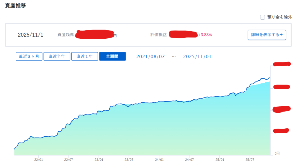 具体的な数値は流石に載せませんが、投資することで資産が増えていることはなんとなくわかるでしょう?