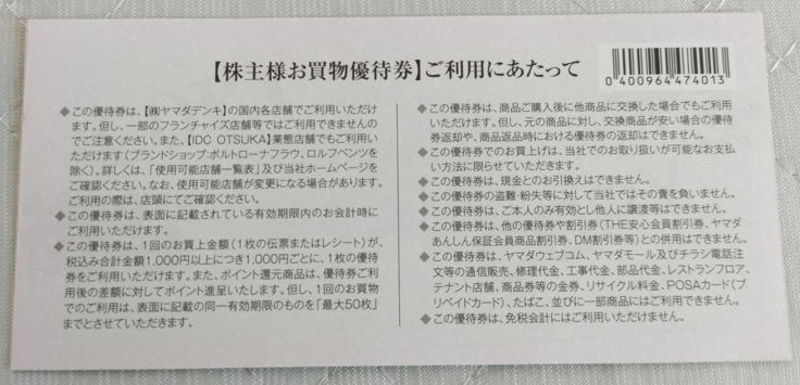 今回は、2025年12月9日着 ヤマダホールディングス(9831)の株主優待についてです。