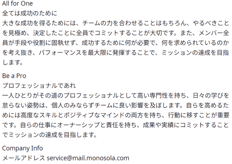 なのですが、monosolaの会社概要は一味違います。