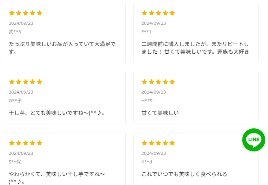 そもそも、例え本当に良い干し芋だったとしても、1袋500g/2,000円(定価だと4,000円over)を超えてくるもので20人もMax評価にしますかね?