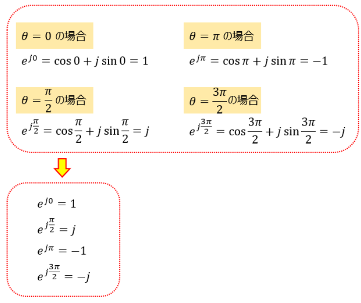 この変換にはオイラーの公式というものを用いるのですが、何でかはわかりませんが「オイラーの公式に則った」という旨が大概書かれていません。