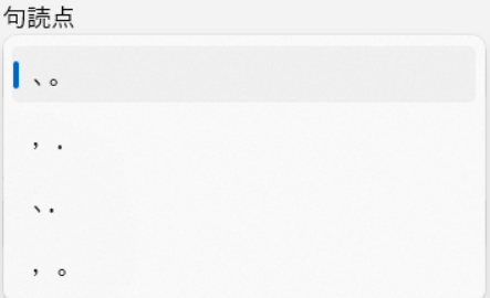 デフォルトだと句点は「。」、読点は「、」になっているかと思いますが、「,(カンマ)」や「.(ドット)」などを選択することができます。