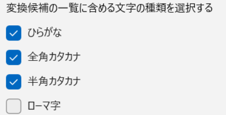 これを選択すれば半角入力に切り替えを出来るのですが、面倒なので私は[半角カタカナ]も候補に挙がるように設定しています。